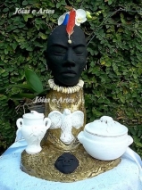 Escultura Busto IBÁ ORI toda em argila maciça de alta qualidade medindo 45 cm de altura acompanha sopeira e quartinha decorada