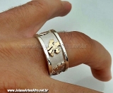 Aliança Escrava toda em prata 950 toda trabalhada diamantada pesando aproximadamente 12 gramas com 3 símbolos VULTO OMOLU/OBALUAYE em alto relevo em Ouro 18k
