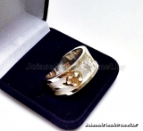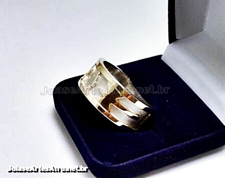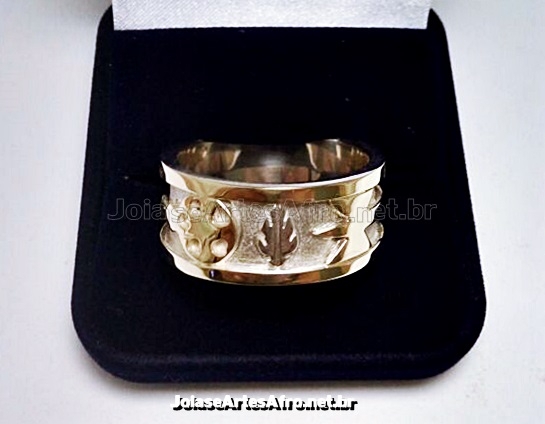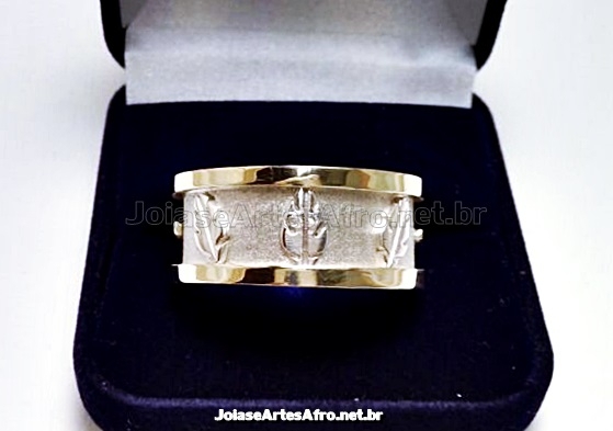 Aliança escrava toda em prata 950 pesando aproximadamente 12 gramas com símbolos OXÊ e ABEBÊ e bordas em alto relevo em OURO 18K