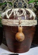 Pote de barro todo decorado medindo aproximadamente 40 cm apropriado para servir de assentamento